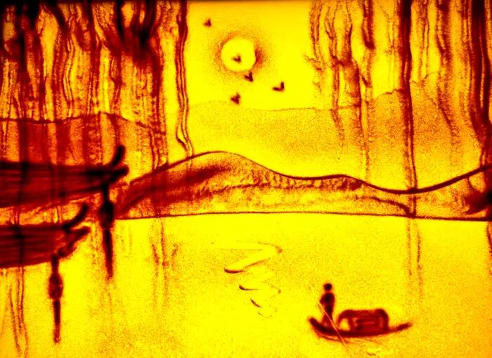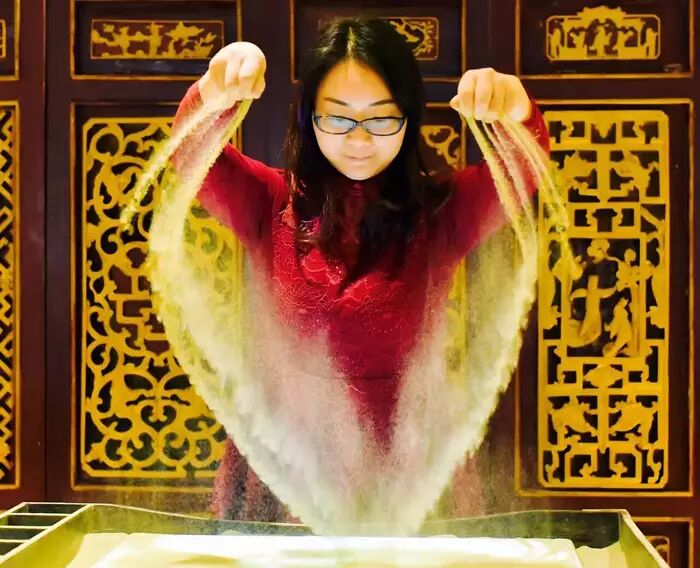 近日,记者有幸看到石奕萍的沙画表演,感受到了这一细腻流畅的“指尖艺术”。41岁的石奕萍说,爱上沙画缘于2015年春晚。歌手那英在演唱歌曲《丝路》的同时,中国当代沙画艺术家苏大宝在一旁进行沙画表演。随着一捧捧金沙在大师手中的流动变幻,一幅幅壮美图景便栩栩如生地呈现在人眼前。“感觉很有意思、很神奇,仅仅几分钟时间,就能在沙盘上绘出人间万象。”