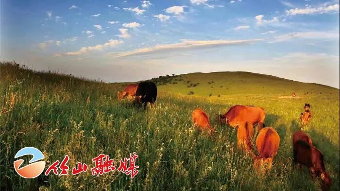 一路上,我们翻山越岭,披荆斩棘,虽然没有遇到凶猛的野兽,但有一种吸食人畜血液的旱蚂蟥,让人忌惮。大约用了两个时辰,我们就登上了这片海拔约2500米、面积近万亩的高山草甸。瞬间,一大片草场映入眼帘,让人心旷神怡。这里开阔得像一望无际的海洋,那平展略带起伏的绿地,好似微微漾起的波浪,自然地铺展开来,让人赏心悦目。草坪里还有稀稀落落的树木,大多是松柏或旱柳,枝干粗壮而发达,像点缀在草坪上的盆景。恰在这时,有一群黄牛从前方奔跑过来,它们个个膘肥体壮,还“哞哞”地欢叫。向导告诉我们,这是附近村民放牧的。他们春天把牛赶上来,到了农历八九月间,再把它们收回去。在这里不愁没草吃、没水喝,也不怕被别人牵走。运气好的,没准下山时还能多出一两头小牛崽呢!