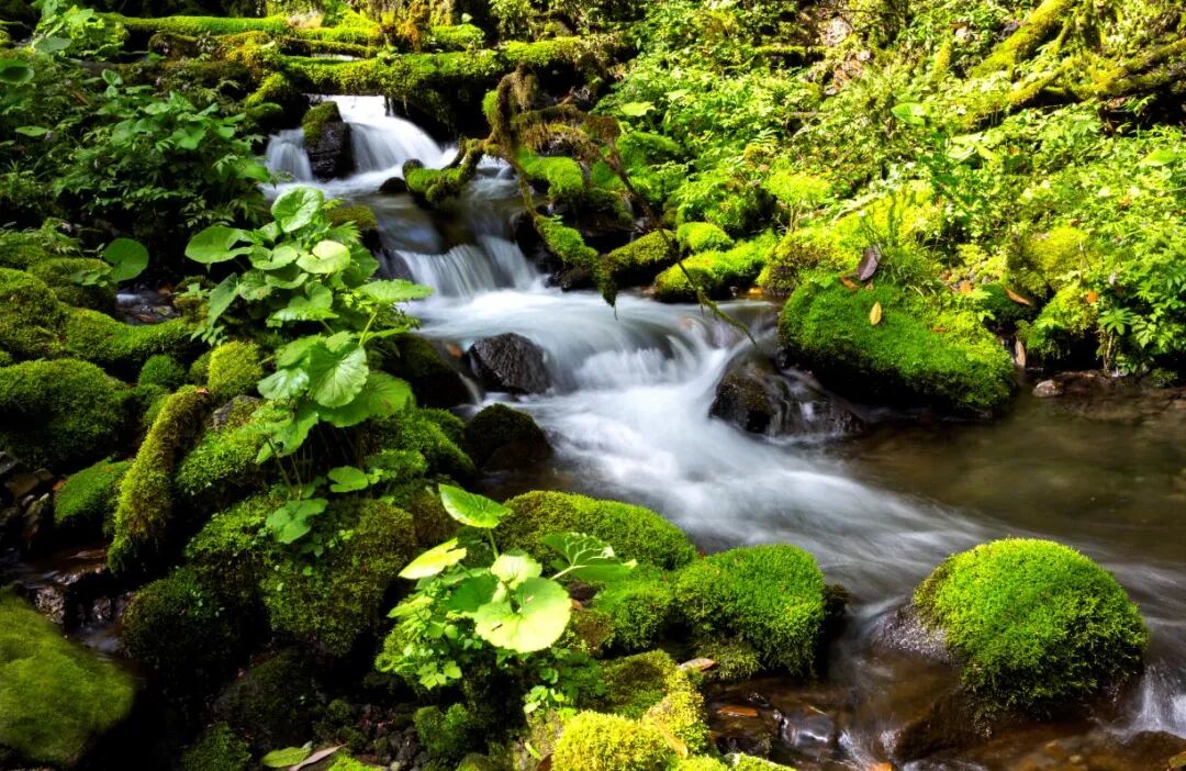 大九湖内本性活泼的水精灵们一起聚得久了,相邀纷纷四处寻找,终寻得一处泉眼。众水精灵以全新的姿态一路相拥,蹀蹀躞躞从山那头竹山县柳林乡境内一个半山腰的幽洞中汩汩探出头,像襁褓中的婴儿带着母亲的体温悱恻幽怨地紧贴大巴山,在伙伴们一再催促下依依不舍地离开泉眼。