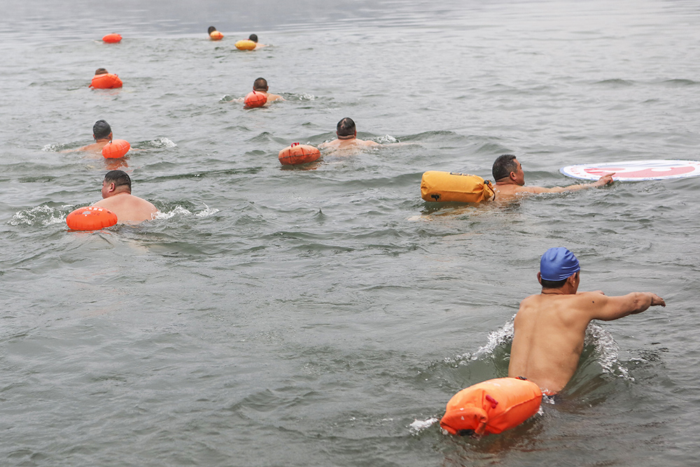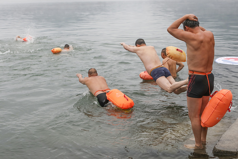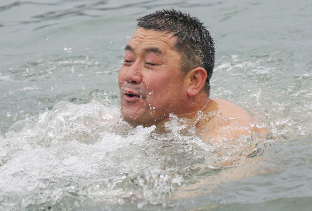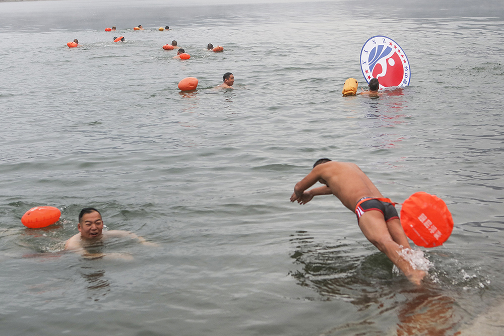据了解,冬泳被誉为“勇敢者的运动”,现已成为我县许多游泳爱好者喜爱的健身方式,这些爱好者来自各行各业,上自花甲老人,下自年轻小伙,他们中坚持冬泳最长泳龄的,已在10年以上。据今天参与冬泳的人员介绍,冬泳不仅能强身健体,还能磨练人的意志。(邵义龙 摄影报道)