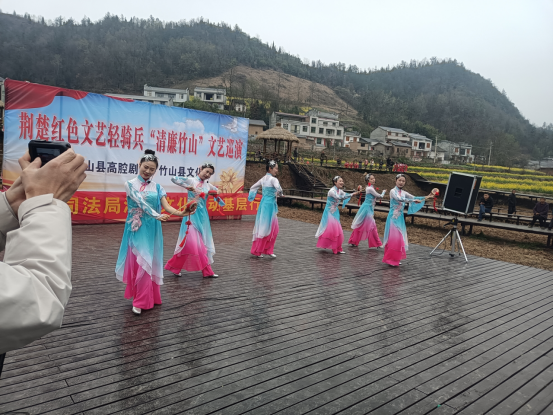 今日竹山网消息 3月20日,荆楚“红色文艺轻骑兵”竹山县志愿服务总队文化文艺支队走进擂鼓镇西河村开展“清廉竹山”文艺巡演,为千余名群众送上丰富的文艺大餐。伴随着高腔巜宣传二十大,建设新竹山》演唱,演出正式拉开帷幕。演出期间巜红红火火》巜弄巧成拙》巜携手并进》等14个不同类型的节目轮番上演,红色文艺轻骑兵们的动人的唱腔、精湛的表演令村民们大饱眼福。(李家林 方松青)