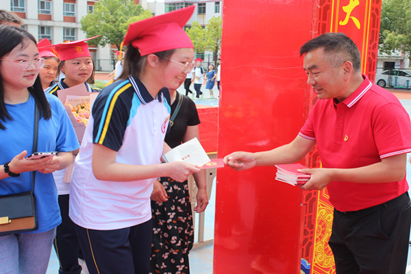 上午8:30分,成人礼活动正式开始。竹山二中党总支书记、校长罗应代表学校致辞,勉励同学们青春十八岁,要敢于担责,力学笃行;成长十八年,要心怀感恩,孝亲敬师;成为高三人,要勤奋学习,追梦大学。立大志,明大德,成大才,学在当下,志在未来,乘风好去,直下看山河,唱响青春的礼赞。