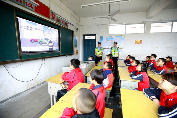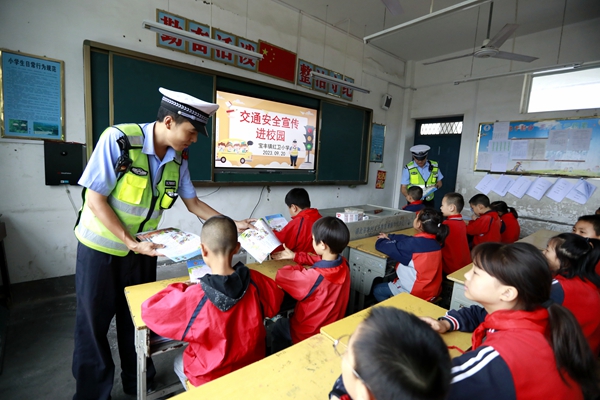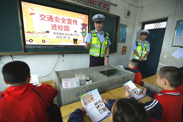 活动中,民警针对红卫小学门前的346国道宝丰一级路韩溪河路段和乡村道路交通实际情况,结合当前交通安全形势、学生出行方式和年龄特点,利用PPT课件围绕“一盔一带”安全守护行动等进行了详细的宣讲,重点向师生讲解如何安全走路、乘车以及怎样避免交通事故发生等交通安全常识,发放了《交通安全倡议书》等宣传资料。民警针对上下学时段,少部分学生闯红灯、乱穿马路、追逐打闹等不安全行为,进行耐心教育和引导。