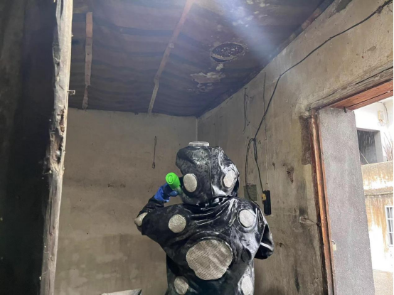 在接到求助电话后,消防队员们迅速出警。到擂鼓村群众家中现场仔细勘察后发现,蜂窝位于求助群众平房顶上,直径约30公分大小。毒蜂仍在周围盘旋,为确保群众安全,消防队员们及时疏散群众,并提醒周边住户关闭门窗。为避免被野蜂蜇伤,救援人员戴好头面罩,穿好防护服,使用收蜂袋摘除蜂窝。摘除完毕后对蜂窝残渣进行了细致清理并在周围喷洒杀虫剂,防止野蜂回巢重返筑窝。