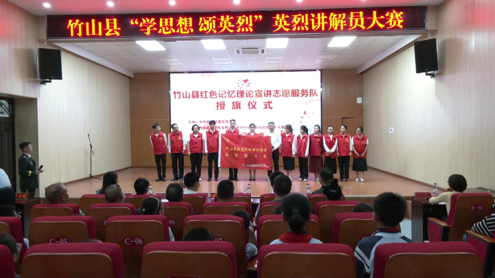 经过角逐,最终评选出一等奖1名、二等奖2名、三等奖3名、优秀奖6名,同时颁授“竹山县红色记忆理论宣讲志愿服务队”队旗。