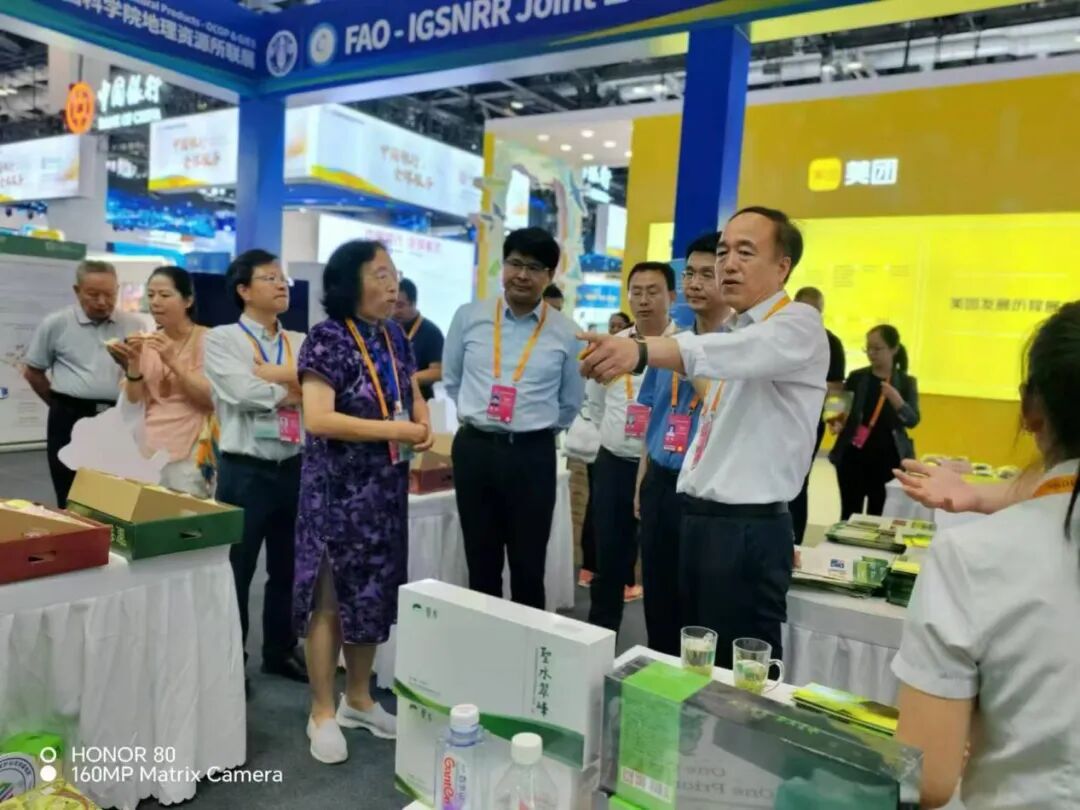 △中国科学院地理资源所工会主席宋献方(右一)参观竹山展位