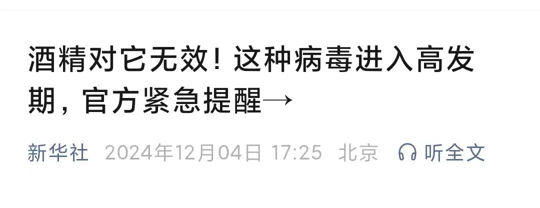 11月30日,国家疾控局发布《学校等重点场所诺如病毒感染防控消毒技术指南》,其中提到,诺如病毒全人群普遍易感,且酒精对其无效,大家一定要提高警惕。(此前报道>>)