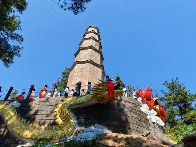 来到山头,我忽然看到一条白龙跃然塔顶。渐渐地,白龙只剩下一鳞半爪,风吹云散,一切归于平静。我感慨万分,文峰塔曾经经历雷劫,而今重获新生。这既是塔的幸运,也是我辈的幸运啊!