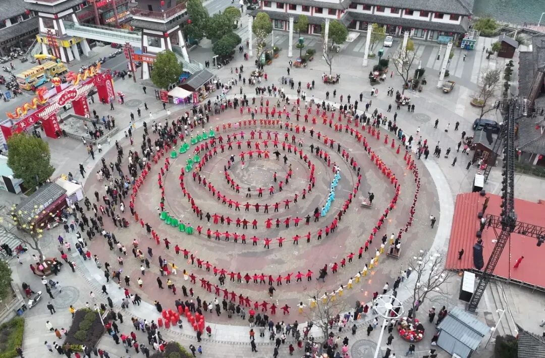 一棵桃树像景区的眼,烔烔有神。小城添了新景致,桃花源街区。上面体恤民心,亲自调遣二号队伍进军桃花源,换防女娲广场,还免费提供电源,这回,天上真掉馅饼了。不仅如此,2025年,政府层面的广场舞大赛正式拉开帷幕,周赛、月赛、年赛,一轮轮比拼。春华秋实,未来可期,大妈们终于走上了舞台中央。