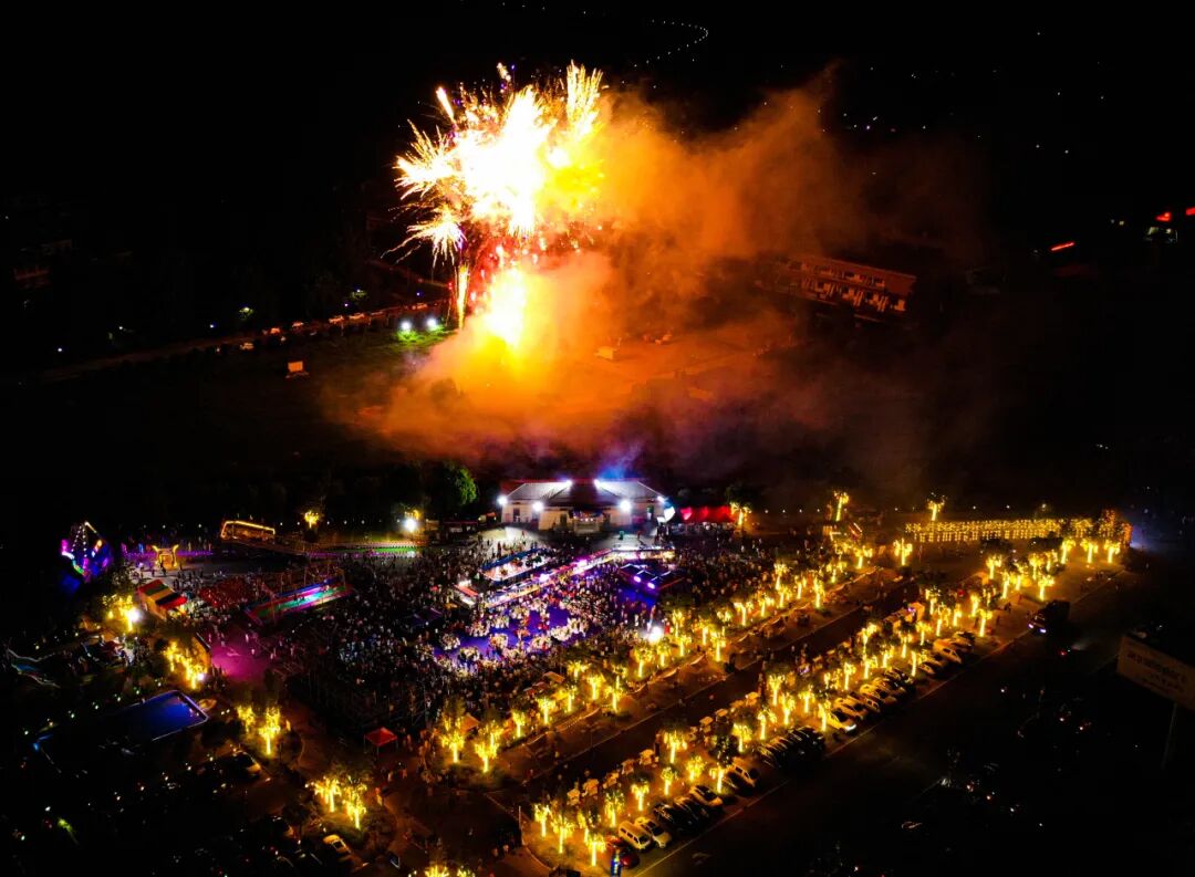 观众手持荧光棒,将夜空点亮成一片璀璨灯海。图源:浩然东津