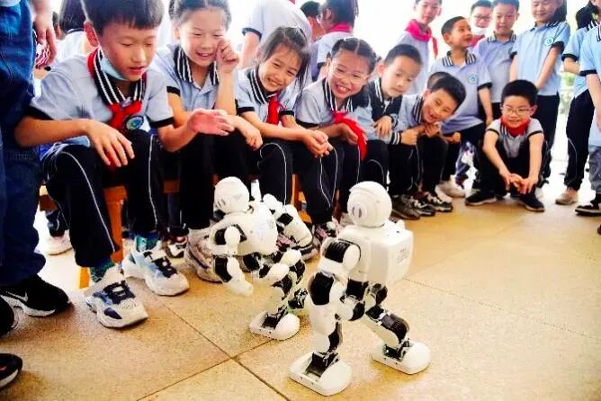 学生们在课堂和机器人互动。 图/长江教育研究院