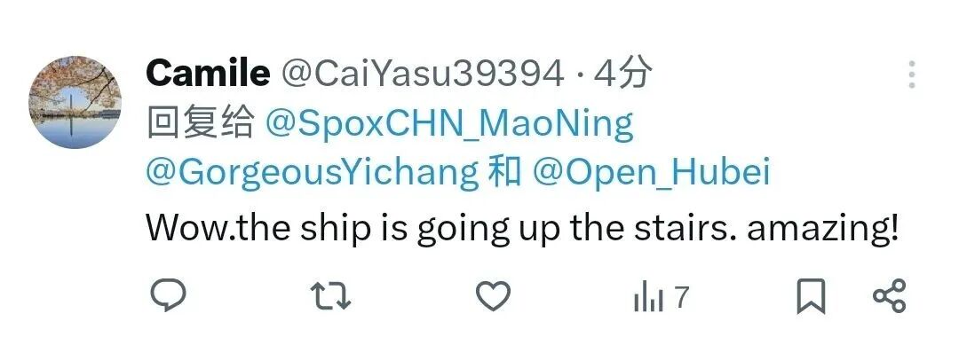 并@了湖北国际传播中心的账号“Open Hubei”。让三峡双线五级船闸成为全球焦点!