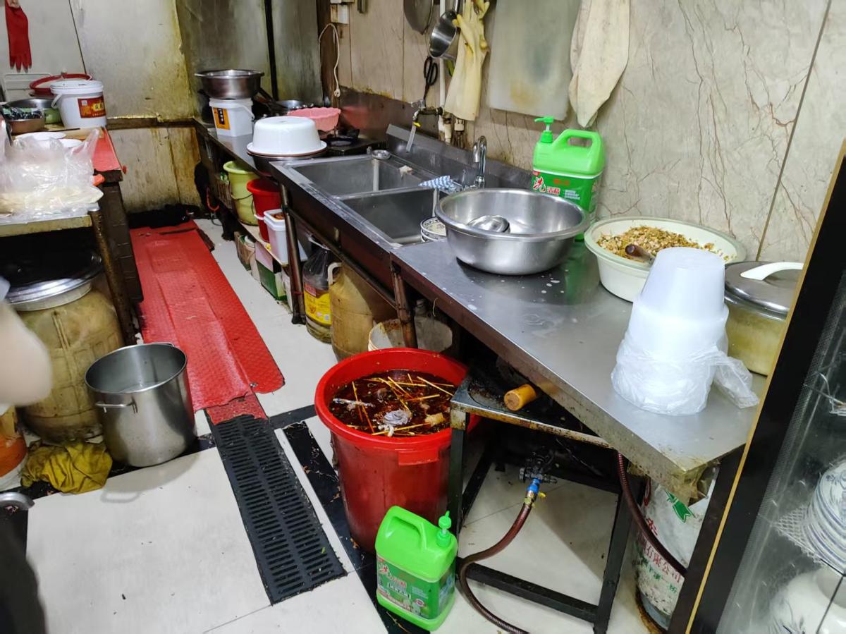 上榜理由:经营场所未向消费者公示《营业执照》《小餐饮经营许可证》、从业人员健康证;操作间卫生状况差,烟机油污未清理,垃圾桶未带盖,餐厨废弃物未及时清理;从业人员上岗未穿戴工作服、工作帽、口罩;操作间未配备防蚊、防尘设施,操作间有蚊虫。