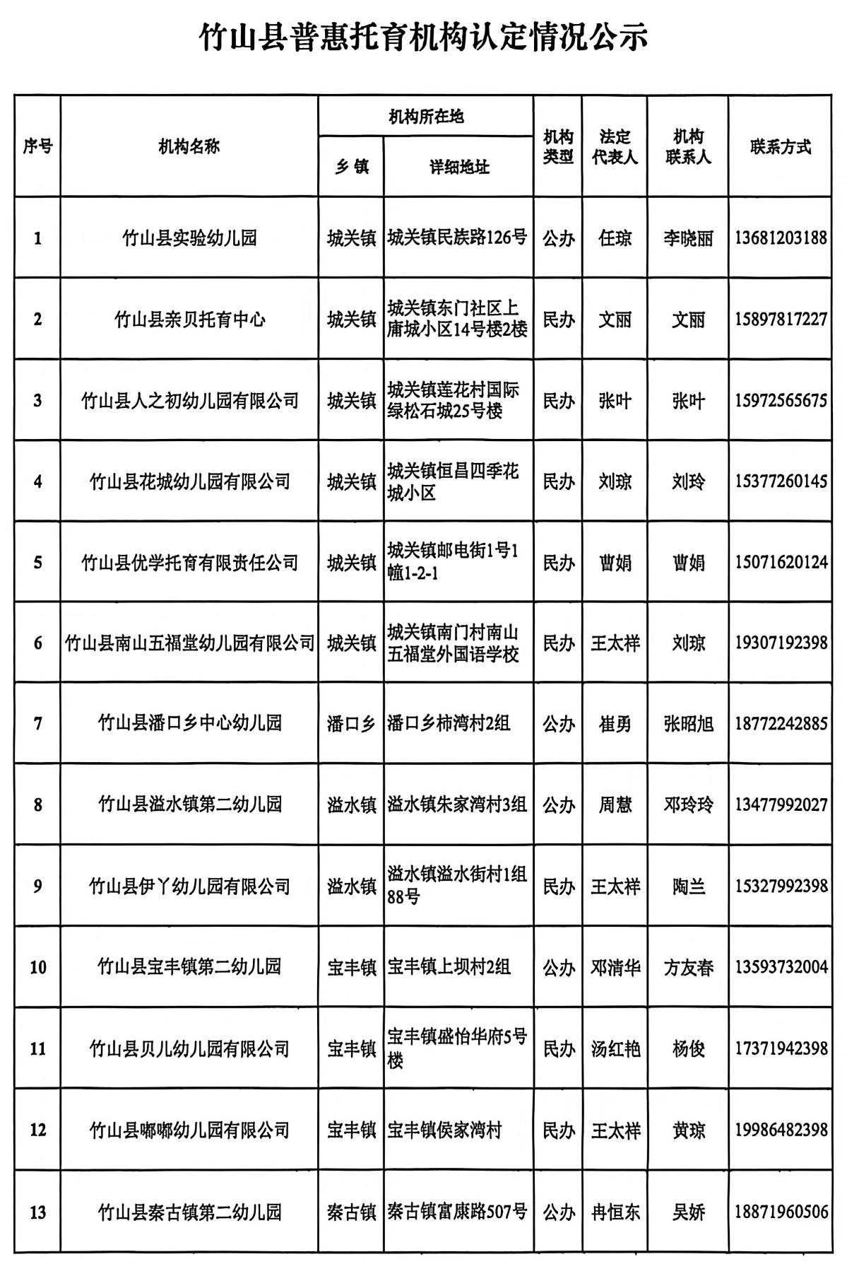 为大力发展普惠托育服务体系,促进我县托育服务高质 量发展,同时加强社会监督管理,根据湖北省卫生健康委《关 于组织开展普惠托育服务机构认定工作的通知》(鄂卫函〔2025〕80号)文件要求,现将我县完成普惠托育机构认定 的13家托育机构名称、地址等信息面向社会公布。