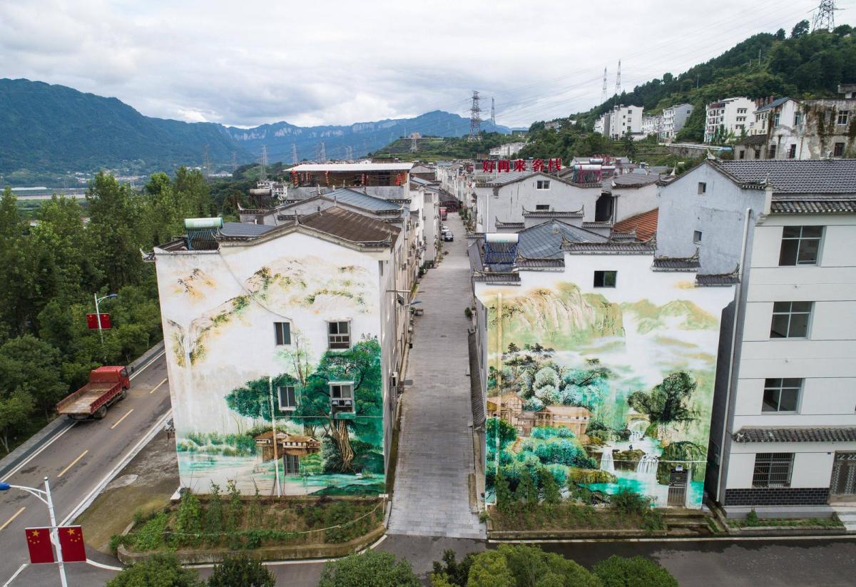 车驶入三峡大坝左岸的山路,便一头扎进了这幅画里。穿过湖北省宜昌市夷陵区太平溪镇,再拐过3道弯,路旁的一块大石头映入眼帘。石头上,“绿色宜居示范村 许家冲村”几个大字清晰可见。