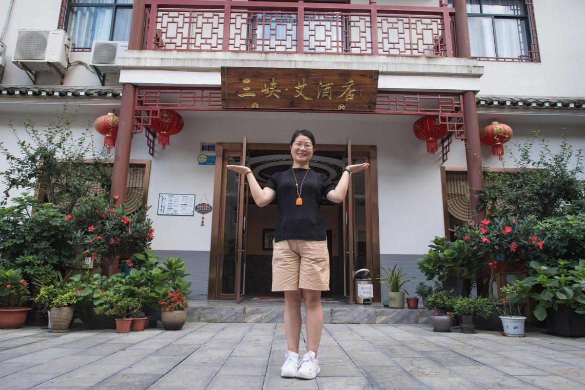 谢蓉展示自己创办的“三峡·艾”主题民宿酒店。新华社记者 肖艺九 摄