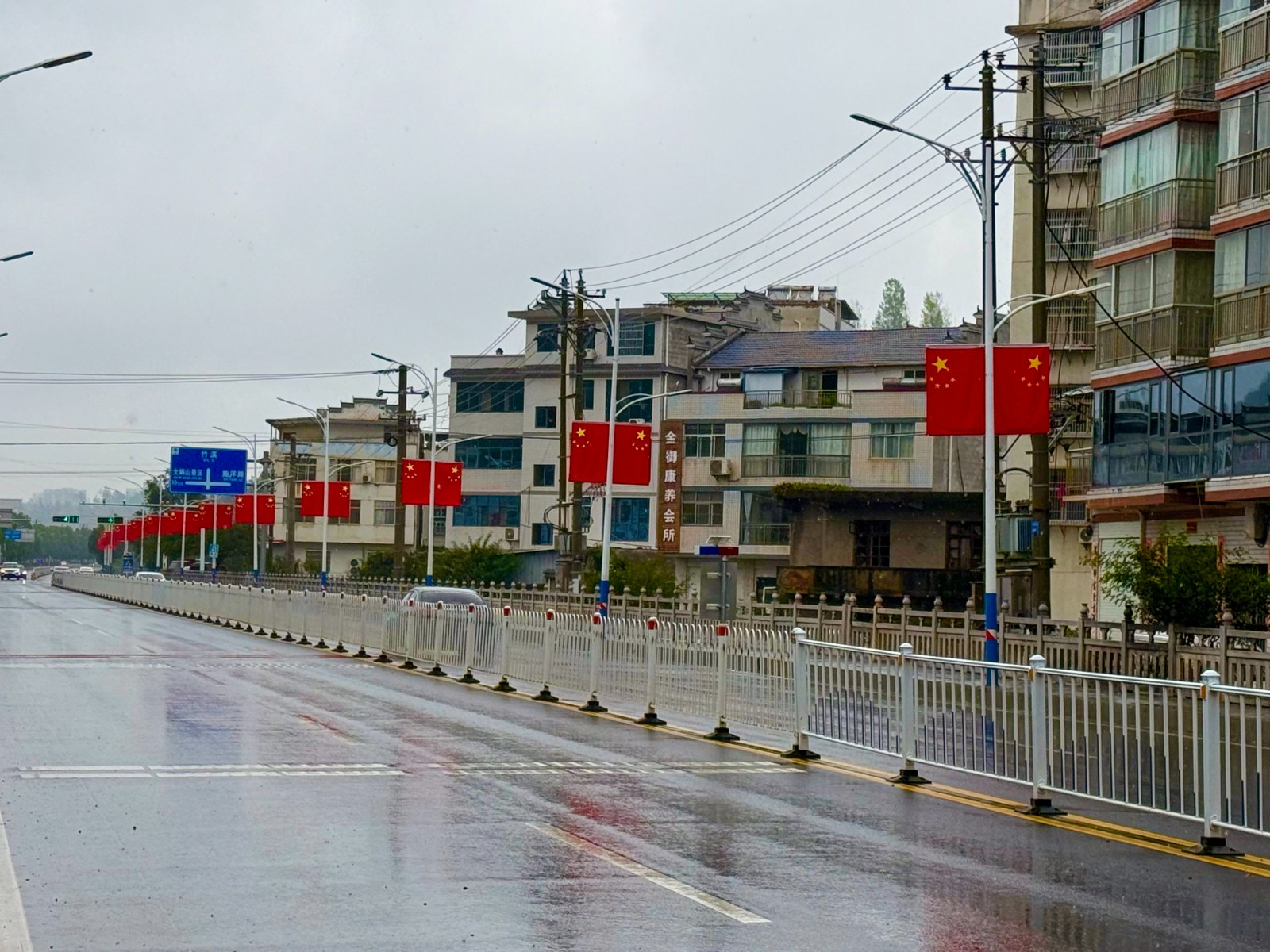 精心“装扮”,浓厚节日氛围扑面而来。走进宝丰镇,一股浓厚的节日气息已然弥漫开来。主干道两旁,一面面鲜艳的五星红旗迎风招展,在秋日阳光下熠熠生辉,形成了一道道亮丽的“中国红”风景线,传递着对祖国繁荣昌盛的美好祝福。政府停车场、广场、十字路口等重要节点,精心布置的时令花卉竞相绽放,一串红、万寿菊、鸡冠花等组成的花坛、花境色彩斑斓,将小镇点缀得生机盎然,引得居民纷纷驻足欣赏、拍照留念。沿街商铺也自发进行装饰,全镇上下洋溢着喜庆祥和的节日气氛。