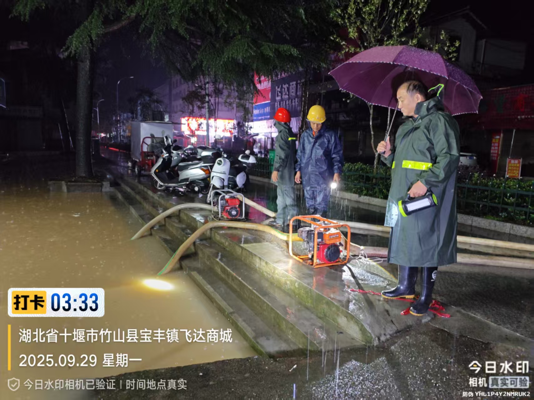 今日竹山网消息 “水已经快到门槛了,夜里雨还一直下,我们真的特别着急。”9月29日凌晨3时许,一阵急促的电话铃声打破宝丰镇值班室的宁静。施洋路社区群众求助反映,受持续强降雨影响,老供销社因地势低洼发生严重内涝,积水即将漫入居民房屋。