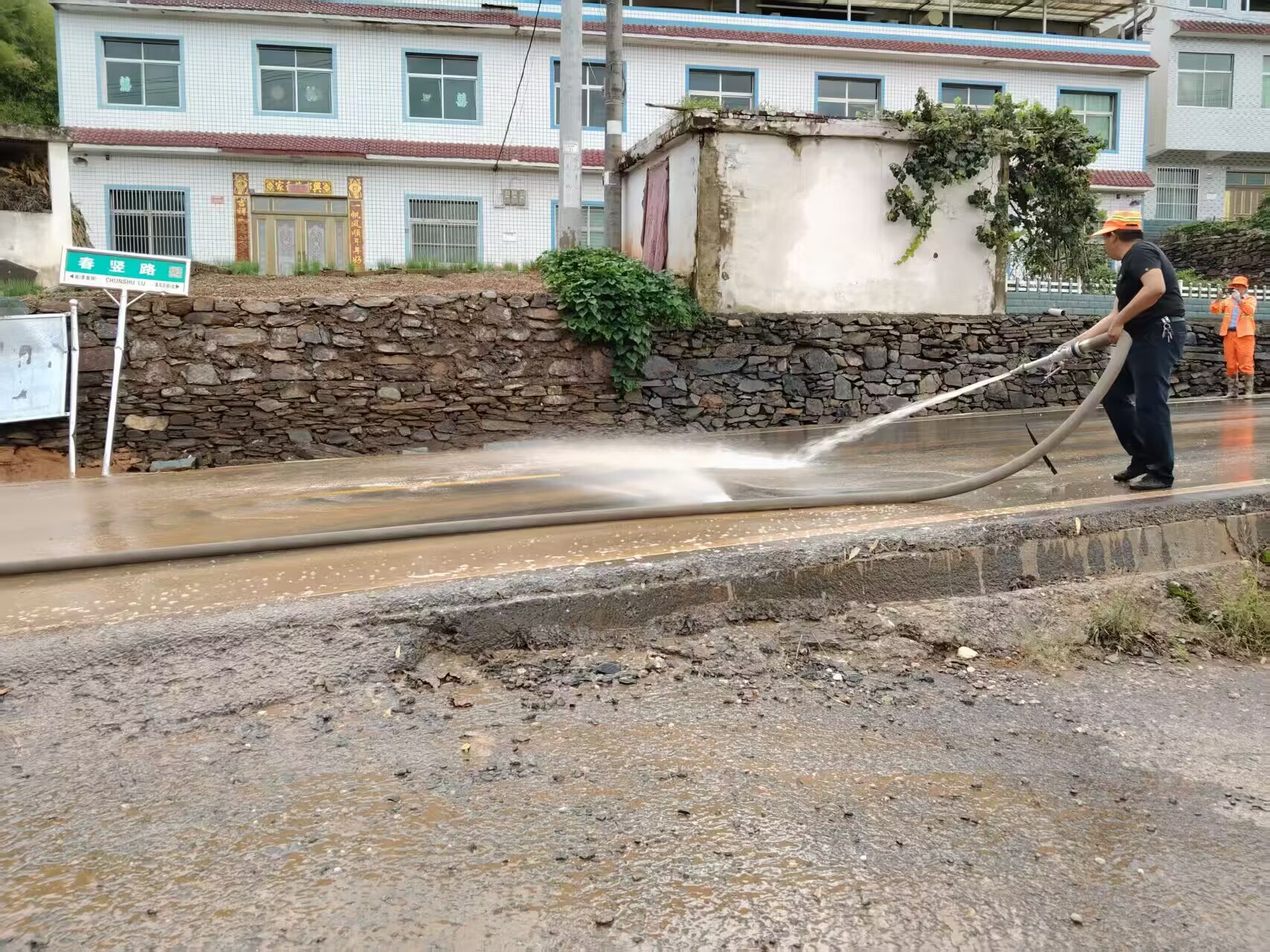 今日竹山网消息 近日,秦古镇迅速行动,组织环卫力量及社区工作人员对辖区内主次干道、背街小巷雨后积聚的淤泥和垃圾进行全面清洗冲刷。