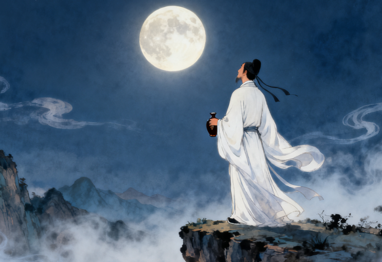 后来书读多了,才知道诗仙李白其实是从月宫贬下来的谪仙。峨眉月、床前月、关山月、瑶台月、花间月、金樽月、古郎月、夜郎月、天姥郯溪月、采石矶的月……一路走在逐月的途中,最终捉月坠江而升仙。一生不停脚步,一路有月照耀,让他的人生得以丰富、丰满、丰盈。