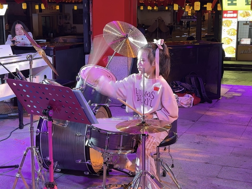 10月4日晚,记者在现场看到,虽夜色渐浓,但源外园广场却灯火通明、人气高涨。舞台上,孩子们自信从容,各展所长。流畅悦耳的钢琴独奏、清新活泼的吉他弹唱、激情四射的架子鼓表演轮番登场,孩子们虽面容稚嫩,但台风稳健,技艺娴熟,充分展现出良好的艺术素养和蓬勃朝气,引得现场掌声不断、喝彩不止。