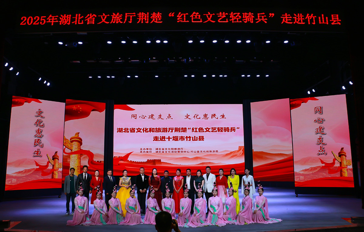 今日竹山网消息 金秋送爽,丹桂飘香。10月12日,荆楚“红色文艺轻骑兵”走进竹山,在县秦巴文化艺术中心一楼剧场倾情献艺。