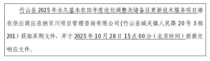 2、项目名称:竹山县2025年永久基本农田年度优化调整及储备区更新技术服务项目