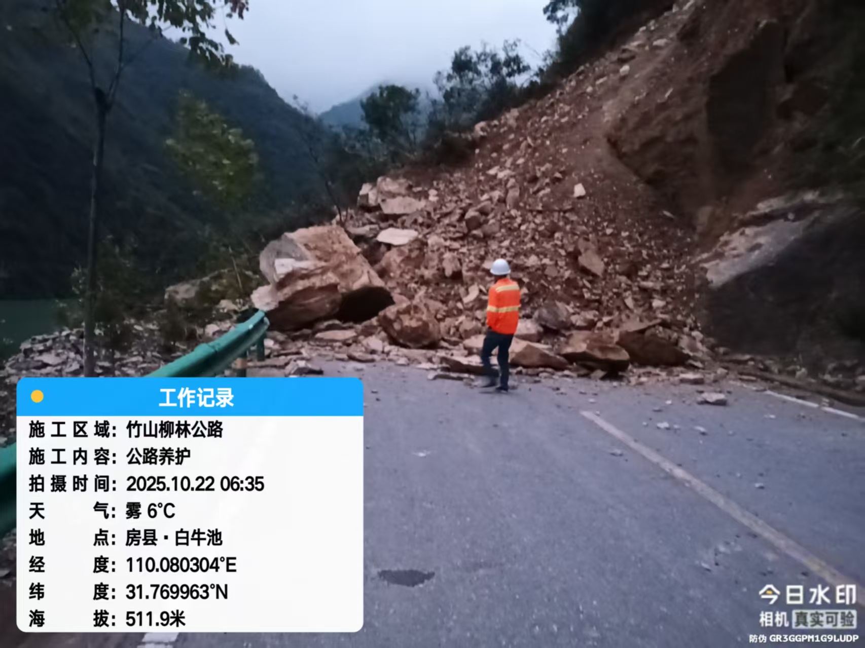 今日竹山网消息 因连续降雨天气,10月22日清晨5时45分,S283省道K144+900 处突发大规模塌方,约7200立方米的土石瞬间阻断交通。柳林养护站巡查队员在晨间巡查中捕捉到这一紧急险情后第一时间设置警示标识,对该路段实施交通封控,同步上报险情。一场与风险赛跑、为民生保通的抢险攻坚战正式打响。