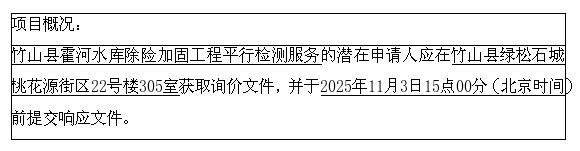 2. 项目名称:竹山县霍河水库除险加固工程平行检测服务