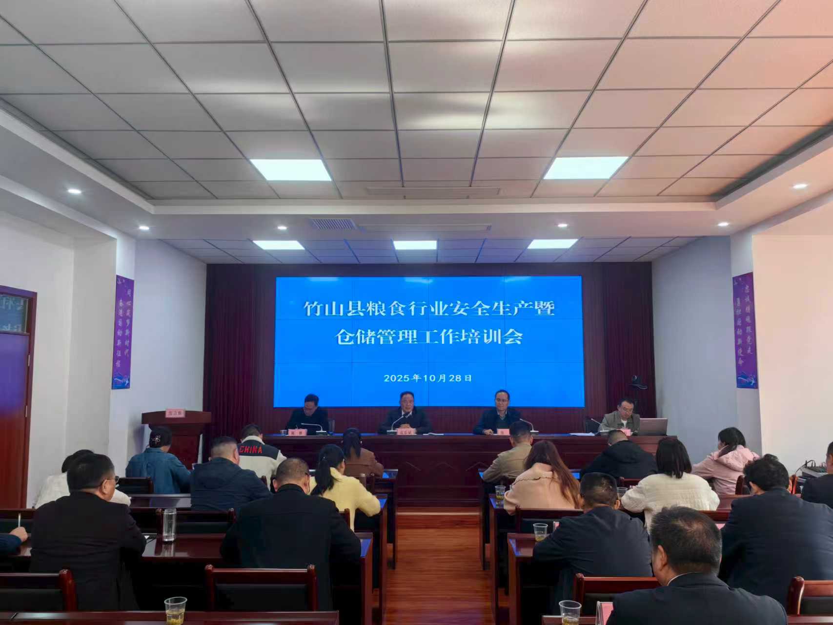 今日竹山网消息 为进一步筑牢粮食行业安全生产防线,提升粮食仓储管理效能,10月28日,竹山县粮食部门组织开展全县粮食行业安全生产暨仓储管理工作培训会,县粮食部门全体干部、国有粮食企业全体员工、县内部分粮油企业、应急供应网点等参加本次培训会议。