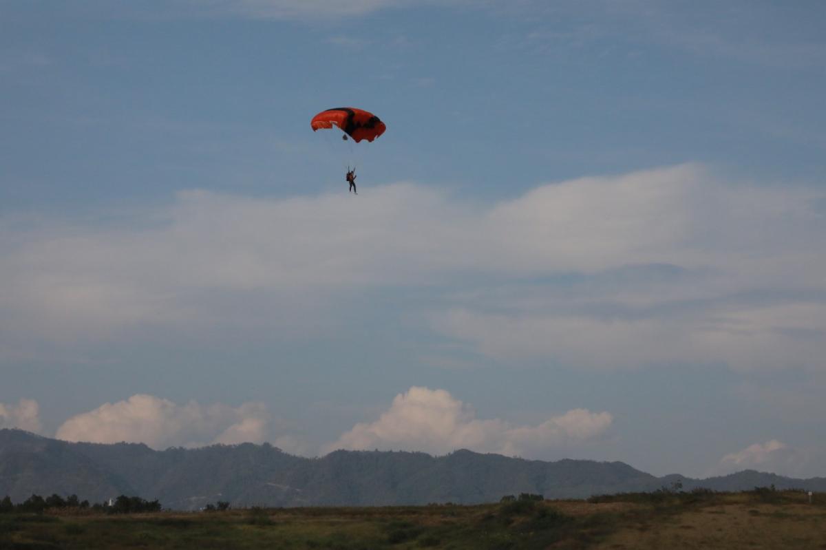 今日竹山网消息 10月27日,竹山县通用机场的训练空域内伞花初绽,来自湖北省跳伞队的队员们在此开展紧张有序的赛前训练,以最佳状态备战11月中旬举办的全国跳伞锦标赛。