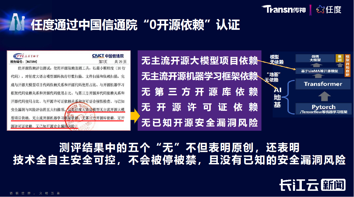 武汉企业传神语联开发的“任度”大模型“0开源依赖”
