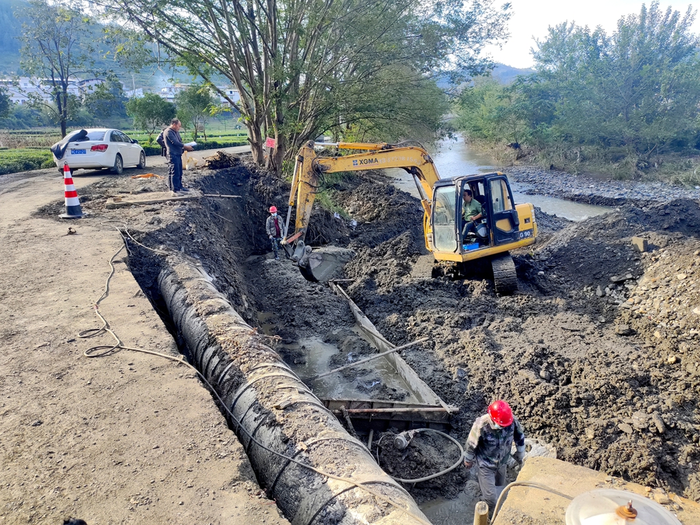 今日竹山网消息 10月27日,竹坪乡陈家河村,茶园路改扩建工程现场热火朝天。挖掘机挥臂开槽,工人拌砂浆、砌岸坡,机器轰鸣与吆喝声交织,一派抢工赶工忙碌景象。