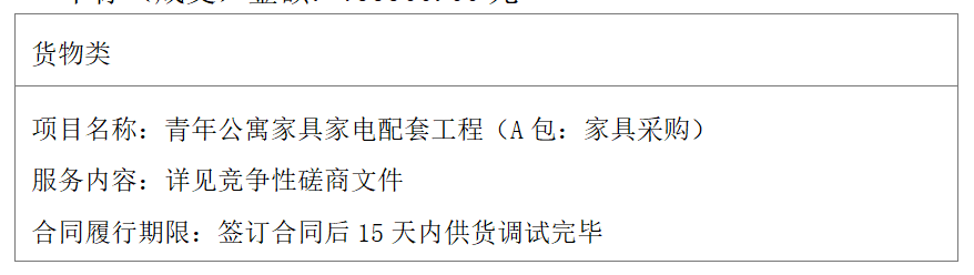 二、项目名称:青年公寓家具家电配套工程三、中标(成交)信息