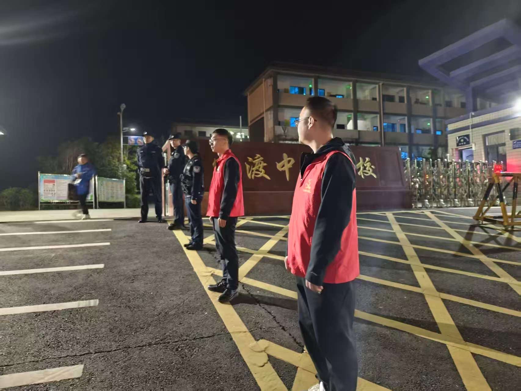 华灯初上时,红色志愿马甲与藏蓝警服已出现在集镇各处:掠过商铺林立的主街,细致排查夜间经营场所的安全隐患;驻足背街小巷的昏暗角落,提醒居民关好门窗;途经热闹的文化广场,向休闲群众宣传防诈骗知识。放学铃声响起前,他们便守在护学岗,引导车辆有序通行、护送学生安全离校,直至最后一名学生被家长接走,才继续投入街区巡逻。