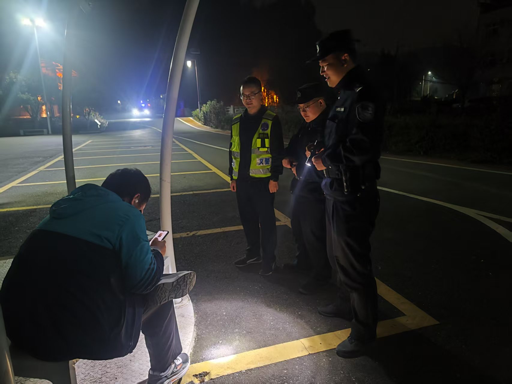 今日竹山网消息 11月5日,擂鼓镇夜间治安巡逻队在辖区文化广场巡逻时,发现一名独自逗留的学生,队员们立即上前耐心劝导,全程护送孩子安全到家后,才继续投入巡逻。这暖心又严谨的一幕,正是该镇常态化夜间巡防工作的生动缩影。
