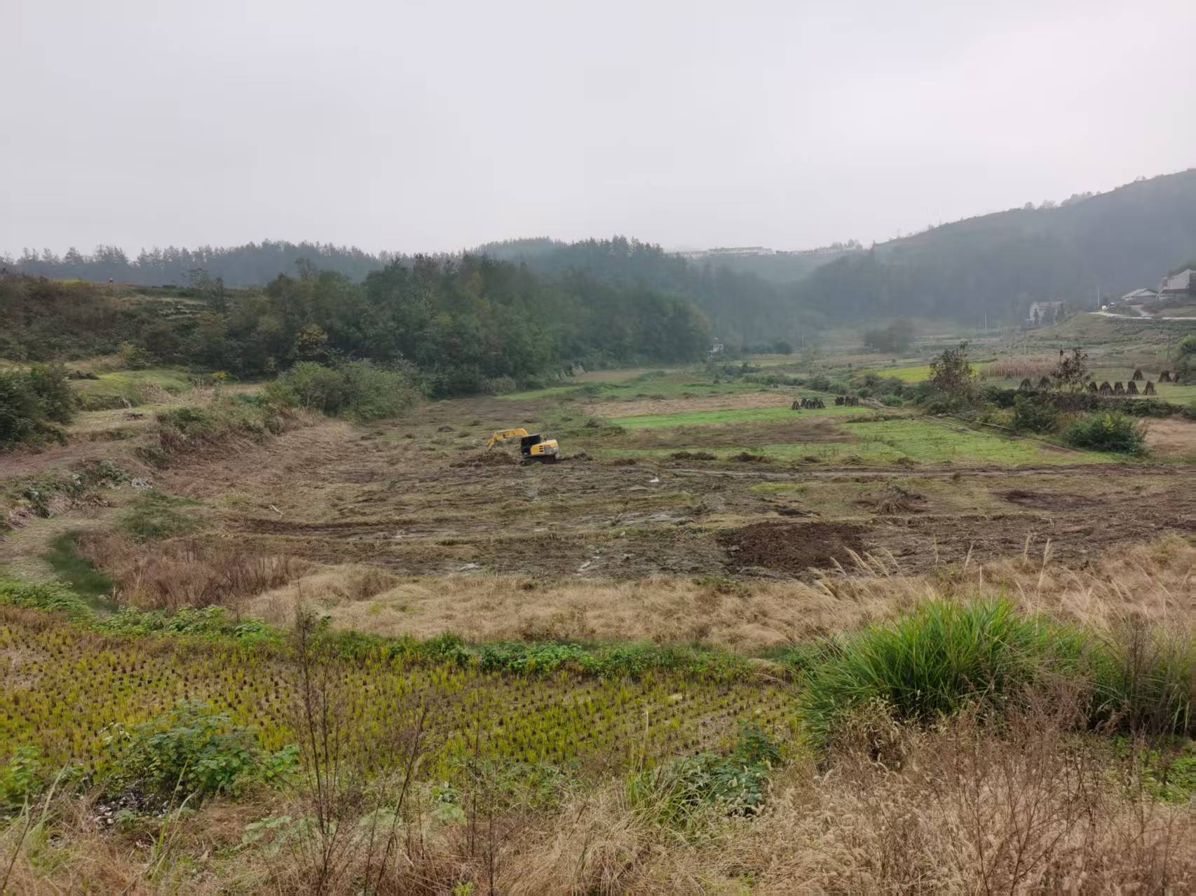 施工现场一派热火朝天的景象,挖掘机、推土机来回作业,村民们忙着清理杂草、平整土地、修建灌溉沟渠,村委会全程跟踪督导施工质量与进度,邀请农业技术人员现场指导,针对地块坡度、土壤肥力等情况,优化土地平整和水利配套方案,确保整改后的土地达到耕种条件。