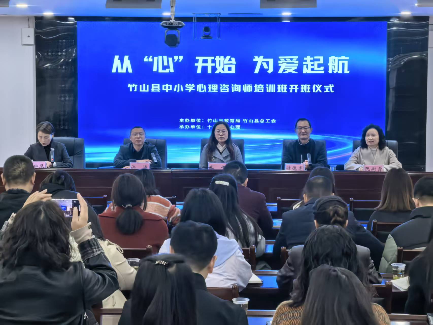 今日竹山网消息 11月9日,由县教育局与县总工会联合举办的首期中小学心理咨询师培训班正式开班,全县90名骨干教师参训。