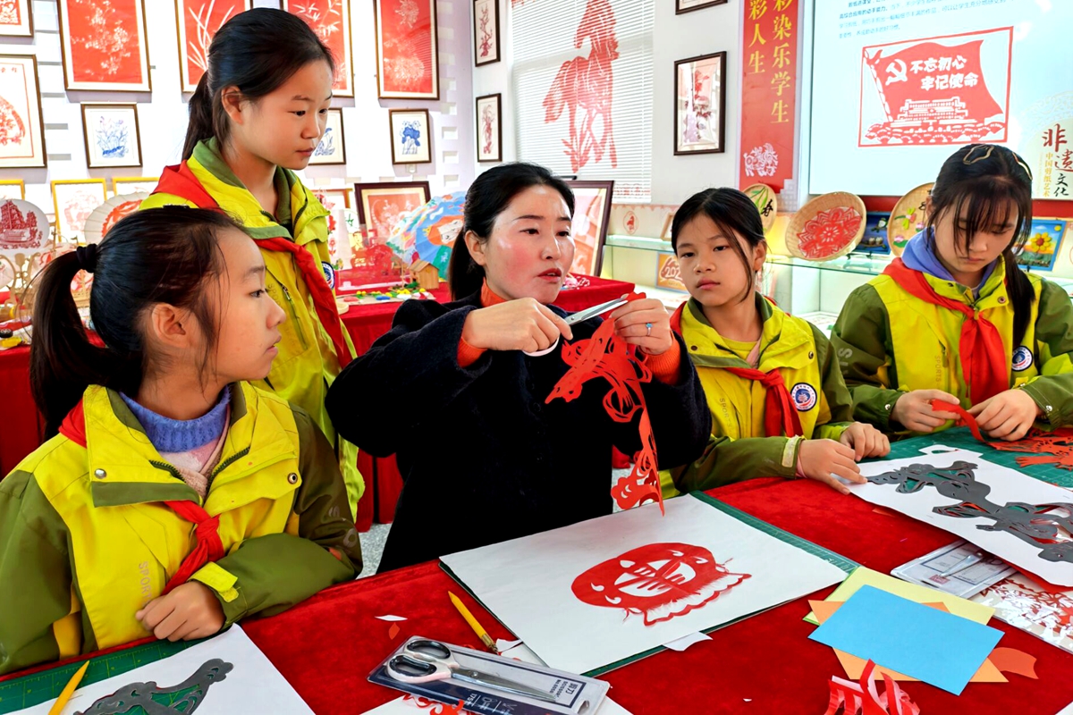 “一张红纸,一把剪刀,一双巧手剪出万千世界。”走进剪纸社团的课堂,孩子们沉浸在剪纸制作的乐趣中,每一处镂空都透着细腻与匠心,指尖流转间勾勒出非遗的独特风姿,纸韵翩跹中聆听文化的低语。以非遗为媒,让孩子们在创意体验中领略剪纸艺术的魅力,更让剪纸文化融入校园的每一个角落,将校园打造成一个充满剪纸艺术氛围的大舞台。(刘东 蔡春芳)