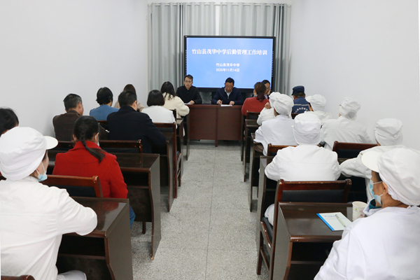 今日竹山网消息 为持续提升学校后勤服务精细化、规范化水平,切实守护师生“舌尖上的安全”,保障膳食经费合规高效使用,11月14日,茂华中学组织开展后勤管理工作专题培训会。