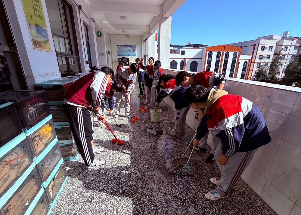 在学校团委的统一部署下,全校学生在各班班主任的带领和现场指导下,迅速投入到劳动中。同学们手持清洁工具,分工明确,默契配合,对日常活动区域进行了深度保洁,并重点向卫生死角“宣战”。