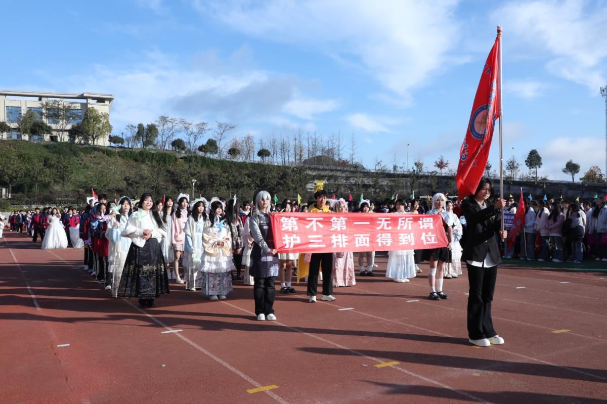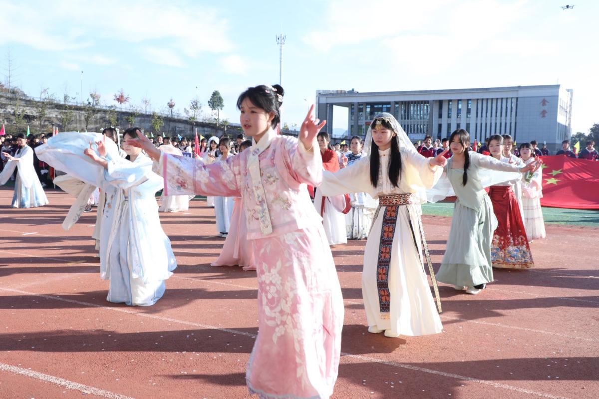 开幕式上,3000余名学生迈着矫健的步伐依次入场。国旗方阵和校徽方阵庄重引领,彩旗方阵气势如虹,动漫、气球、礼服、彩带等方阵色彩斑斓,各班方阵精彩纷呈,展现出职教学子的青春风采。舞蹈《精忠报国》气势恢宏,展现了学子们的爱国情怀;《快乐出发》节奏明快,洋溢着青春的活力;《哈尼宝贝》《胭脂妆》等舞蹈节目民族风情浓郁,动作优美动人;《最炫民族风》点燃全场气氛;《羊角花儿云里开》以柔美的舞姿,将开幕式推向了高潮。