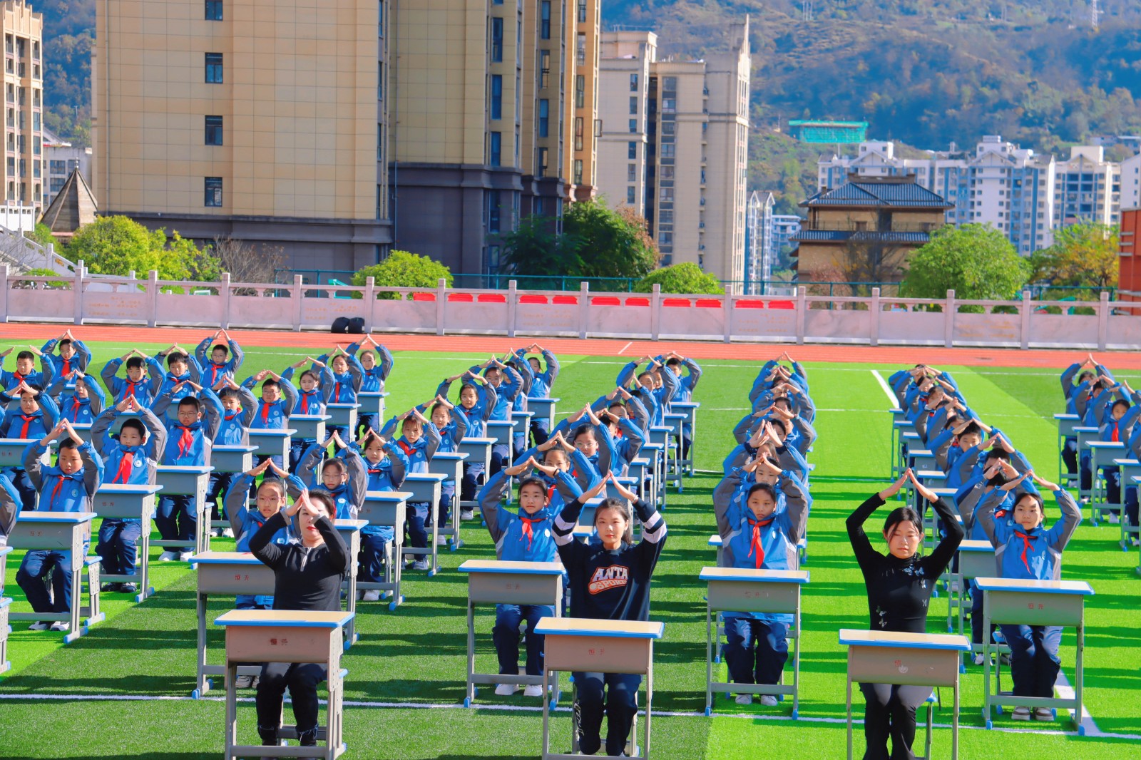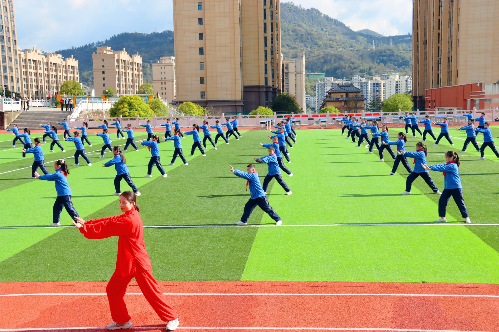 展演以活力桌操《少年舞韵绘中国》开场,同学们以课桌为舞台,展现新时代少年风貌。武术操《武韵启智风华恒跃》紧随其后,学子们刚柔并济,赢得阵阵掌声。