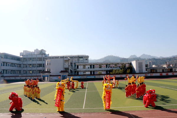 活动现场,各类特色节目轮番登场、亮点纷呈。课桌操《攀登吧,少年!》以日常课桌为创意舞台,学子们动作灵动、精神昂扬,用蓬勃姿态诠释青春激情与远大理想;花式课间操《Lucky Strike》中,同学们的跃动身影如跳动的音符,舒展肢体似铺开的画卷,在律动中传递友谊、绽放青春光彩;非遗传承项目龙狮表演《龙腾狮跃》气势恢宏,金龙翻腾、雄狮劲舞,尽显传统文化魅力与少年精气神,传递深厚文化自信;书法展示《笔歌墨舞》环节,学子们挥毫泼墨、笔走龙蛇,在笔墨流转间传承中华优秀文化基因;合唱《青青世界》则集结百名学子同声放歌,和谐旋律中饱含少年意气与家国情怀,赢得现场阵阵掌声。