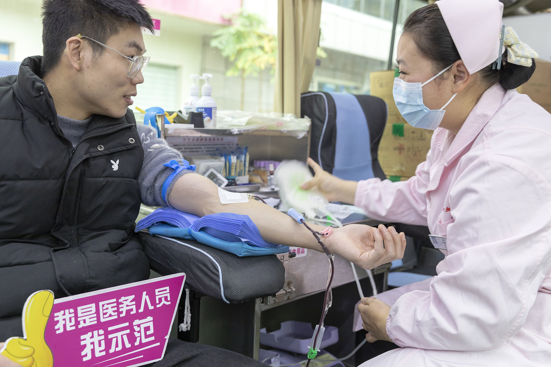 在这次献血队伍中,不少医护人员的累计献血量都超过了5000毫升:急诊科救护车司机陈志24次献血9600毫升,中药房李文静18次献血6400毫升,门诊部詹明斌15次献血5800毫升,皮肤科刘清萍16次献血5500毫升,预防保健科朱丽16次献血5400毫升……他们中,有人刚刚结束手术室里的手术,脸上口罩的勒痕还未完全褪去,就匆忙赶来献血;有人特意选择周末,利用休息时间参与,只为不耽误日常的诊疗或护理工作;还有科室的同事自发组成“爱心后援团”,在献血车里为献完血的同事递上温水和御寒的外套。