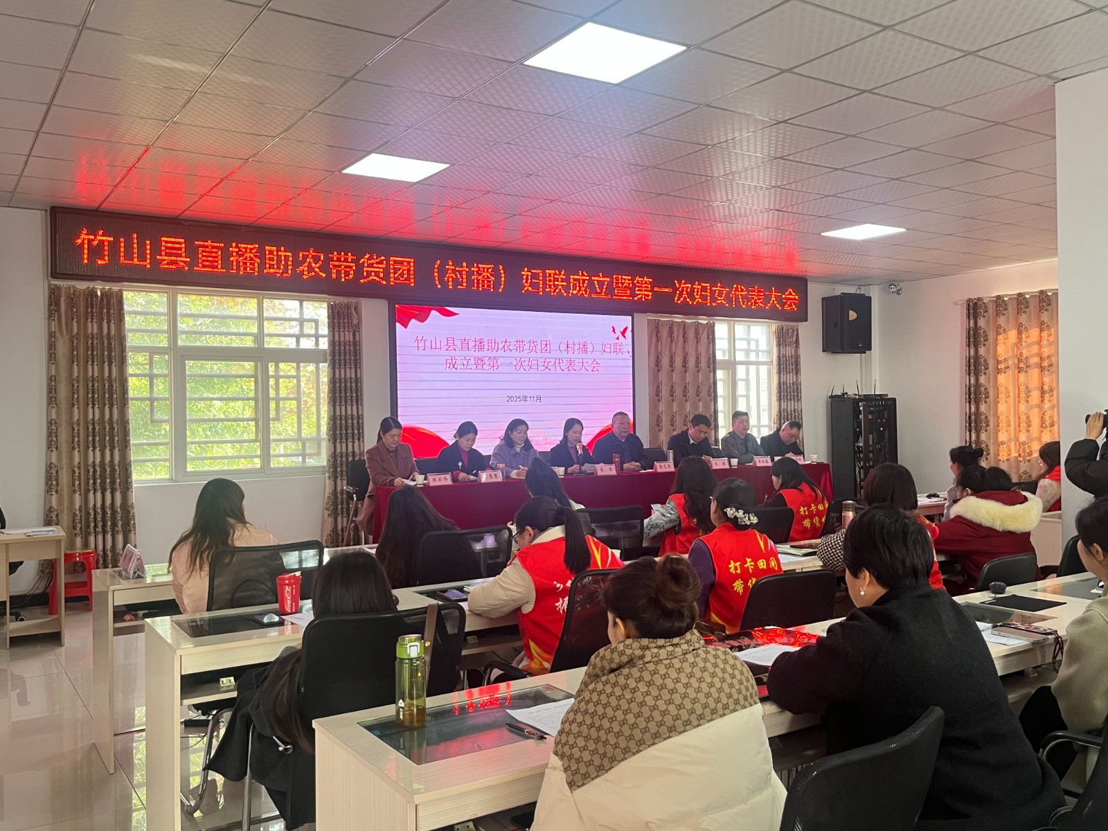 今日竹山网消息 11月24日,竹山县直播助农带货团(村播)妇联成立暨第一次妇女代表大会在县电子商务公共服务中心召开。县妇联、县委网信办、县委社会工作部、县科技经信局、县农业农村局、县电子商务公共服务中心等单位相关负责人,以及来自全县村播行业的30名妇女代表共同参加会议。