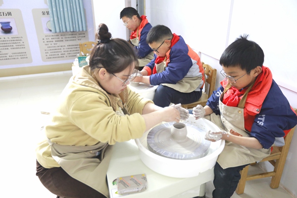 近年来,该校以陶艺课程为切入点,探索“劳艺相融”的育人新模式,让乡村教育在非遗传承与劳动实践中焕发勃勃生机。“慢点转,手指要稳!”陶艺社团指导老师轻声提醒着正在拉坯的学生。课桌上,一件件充满童趣的陶艺作品整齐陈列,憨态可掬的泥塑小动物、纹样古朴的杯盏、造型别致的笔筒……这些由学生亲手完成的200余件作品,从揉泥到烧制,全程浸润着劳动的汗水与艺术的巧思。学校将陶艺制作纳入劳动教育体系,通过“非遗+劳动”的课程设计,让学生在实践中感受陶艺创造的价值,体悟“匠人精神”的深层内涵。学生陶艺作品既保留了传统技艺精髓,又融入了天马行空的想象力。学校负责人介绍,未来将继续深化“劳艺相融”模式,拓展农耕体验、传统手工艺等课程,让劳动教育从课堂走向生活,让非遗传承从技艺升华为文化自信。