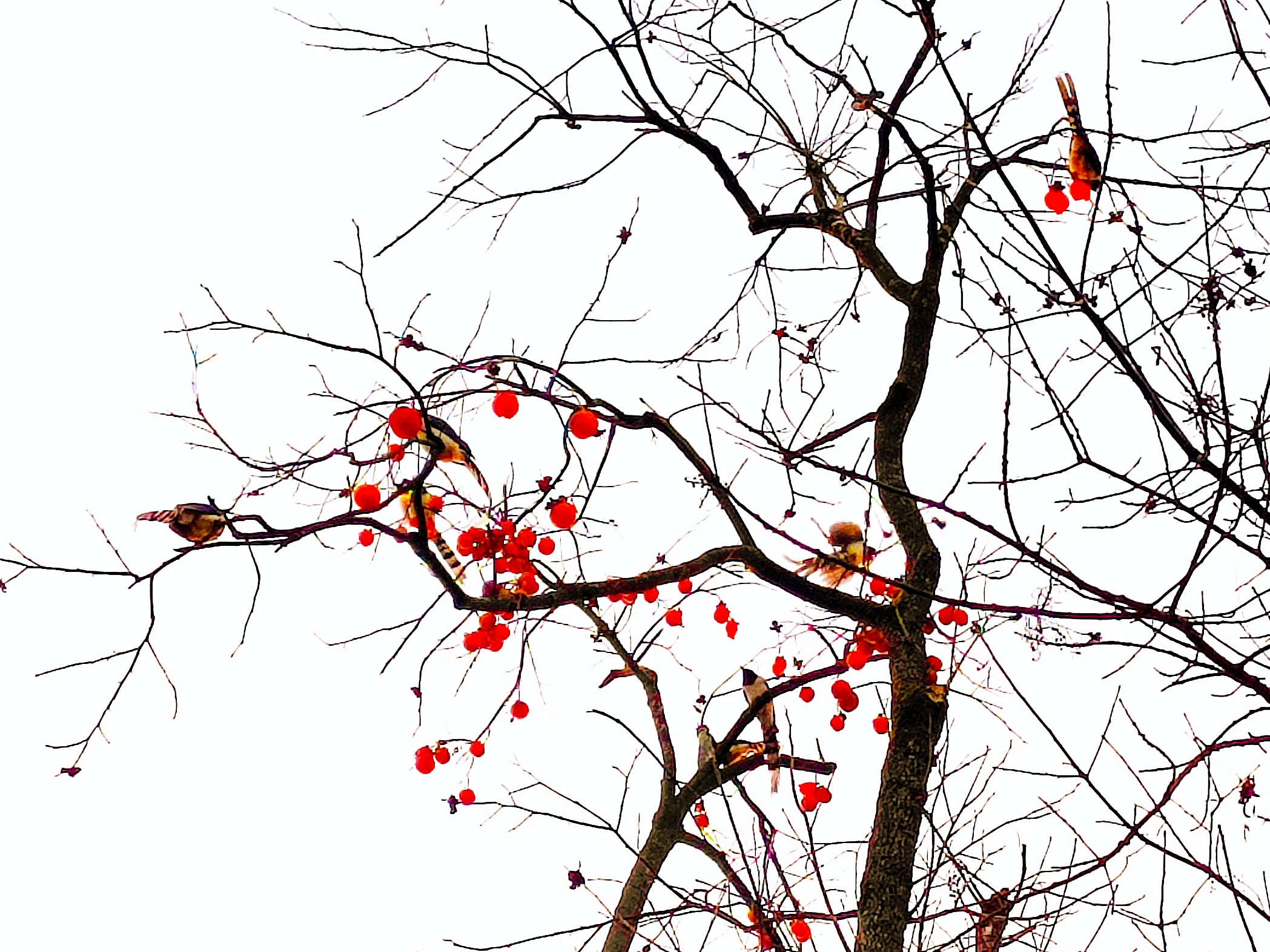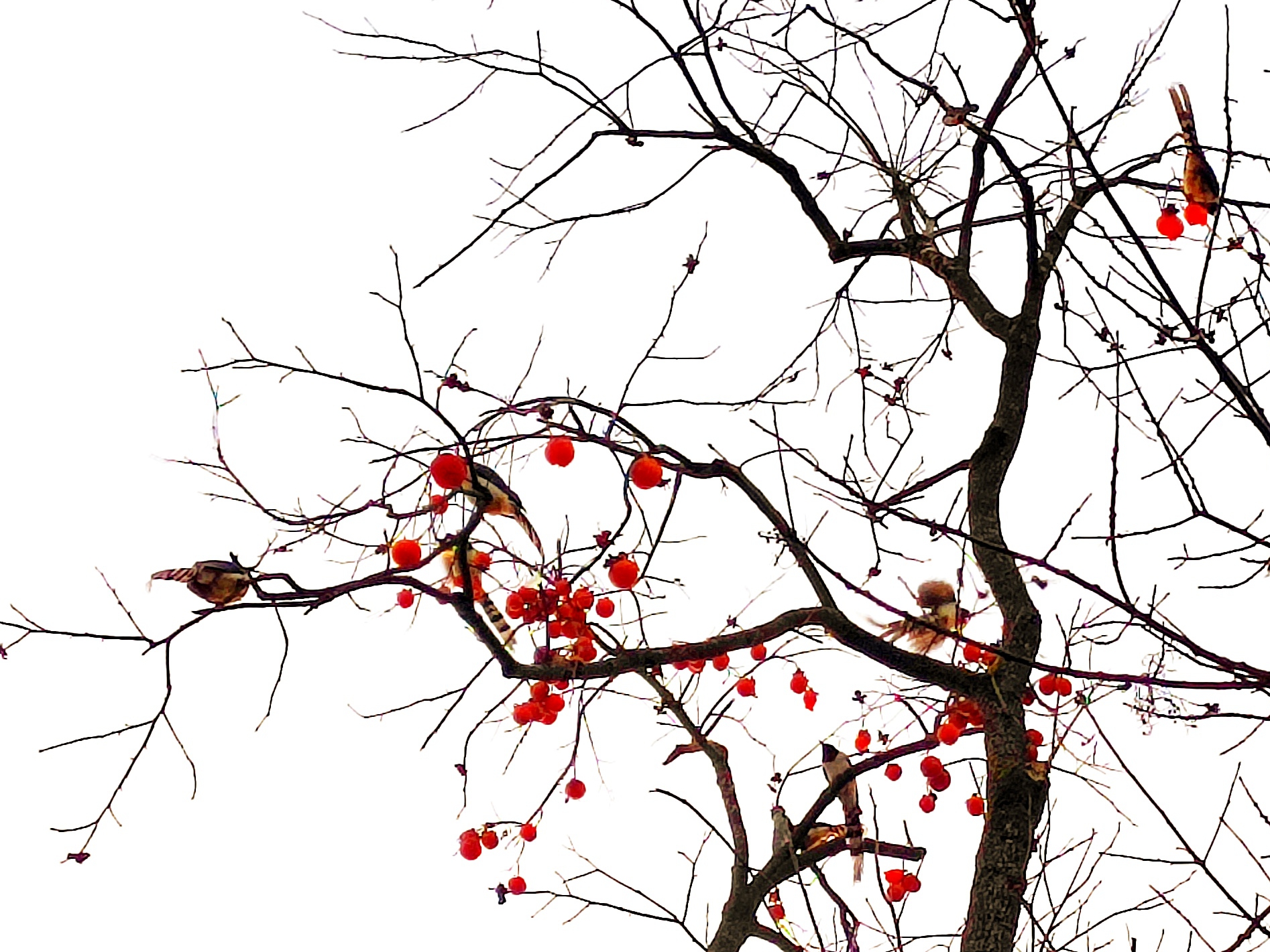 村民介绍,院子周边有许多鸟类,他们每年都没有采摘树上的柿子,只为鸟儿越冬有“柿”粮。(张云朝)