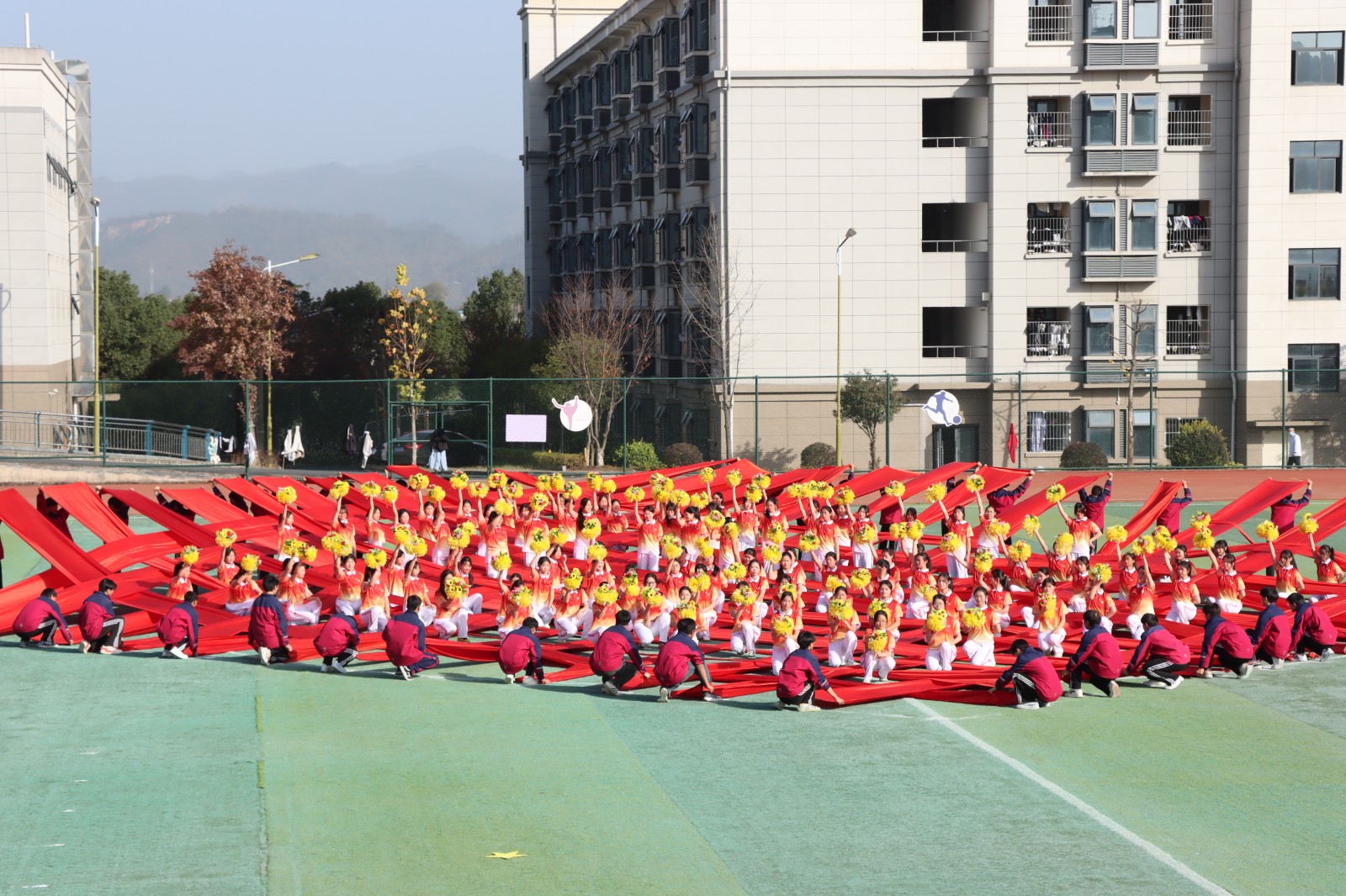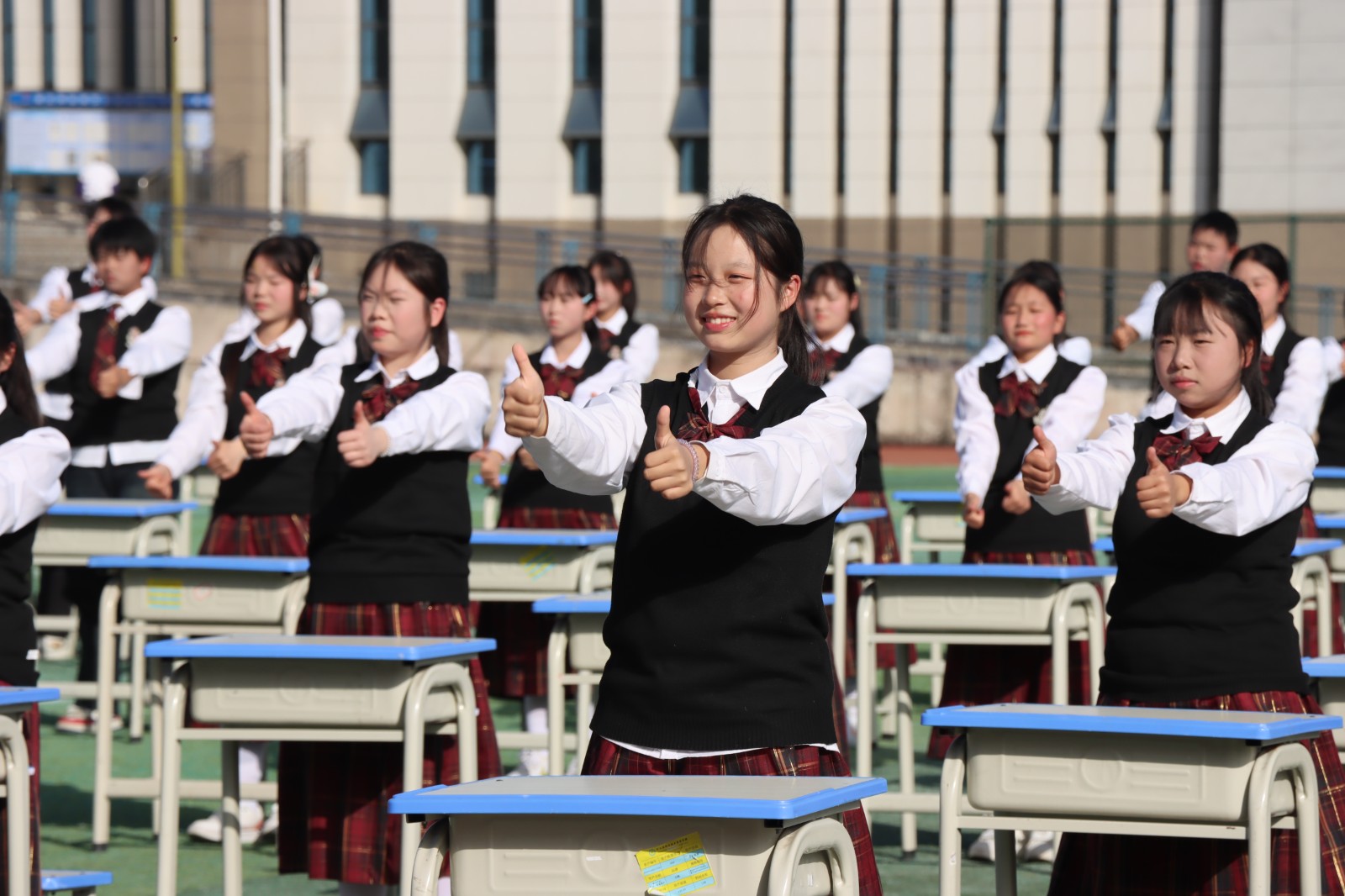活动现场,各类精彩场景轮番上演。快乐桌操《中华好少年》展演环节,同学们动作整齐划一、节奏铿锵有力,展现出职教学子昂扬向上的精神风貌。花式课间操环节亮点纷呈,数十名女生踏着校歌《匠心闪耀》的动人旋律翩然起舞,灵动舞姿舒展青春意气;随后,数十名男生手牵夺目红绸,从运动场各方激情奔涌、默契联动,最终巧铺成寓意吉祥的中国结造型,最后两支队伍巧妙融合,以匠心编排彰显美育教育与阳光体育的深度融合。书画展板上一幅幅毛笔书法与绘画、纸塑作品主题鲜明、创意十足。非遗文化展区的泥塑作品造型精巧、意蕴深厚,尽显传统技艺的独特魅力。艺术教学成果舞蹈《红绸鼓韵·韶华逐梦》鼓点铿锵,红绸翻飞,跳出了职教学子的青春激情。