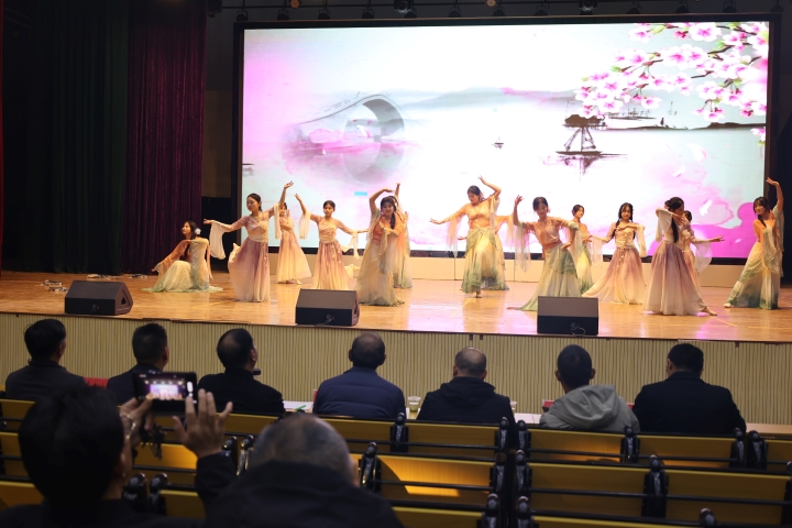 书法作品展示环节中,一幅幅笔力遒劲、章法工整的作品,既彰显了同学们扎实的书法功底,更传递了中华优秀传统文化的深厚底蕴,引得评委老师驻足观赏、悉心指导;高三(2)班张贻嘉同学带来的戏曲表演《梨花颂》,唱腔婉转悠扬、韵味十足,将古典戏曲的艺术魅力展现得淋漓尽致,让现场观众感受了中华艺术瑰宝的独特韵味;最后,古典舞《云裳染清霜》压轴登场,舞者霓裳轻舞、衣袂飘飘,以曼妙舞姿勾勒出东方美学的极致浪漫,为整场展演画上圆满句号。